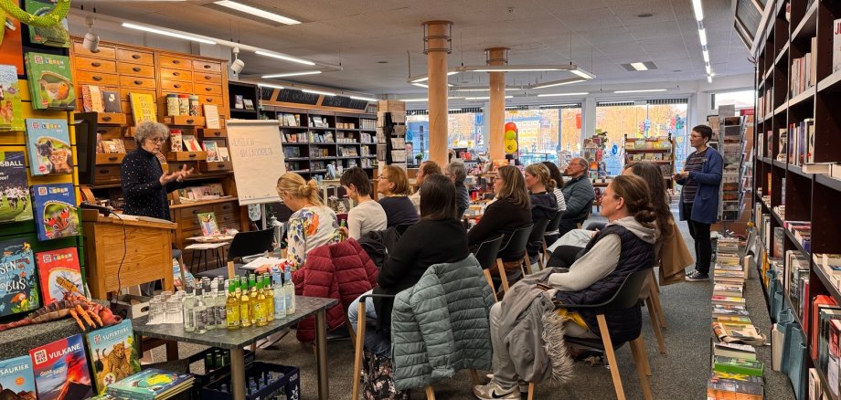 Kürzlich trafen sich 15 Interessierte in der Buchhandlung Danko in Gerolstein, um sich mit dem Thema „dialogisches Vorlesen“ auseinander zu setzen. Mit der Lese- und Literaturpädagogin Ulrike Erb-May haben sie unter fachkundiger Leitung auf Bilderbücher geschaut und sich damit auseinandergesetzt, wie wir vorlesen.
