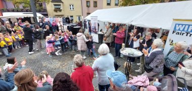 Beim Fairen Markt im September hatten die T-Shirts Premiere. Sie ergänzten das stimmige Gesamtbild der Gruppe, die unter dem Motto „Fair handeln - Vielfalt erleben“ wieder viele faire Angebote präsentierte: Die Besucher konnten fair gehandelten Kaffee und Gebäck genießen. Berschvolk aus Esch war mit seinen Eifel-T-Shirts aus fair gehandelter Baumwolle vertreten, der Weltladen Daun mit seiner Warenvielfalt, außerdem die Berufsbildende Schule Gerolstein und das Haus der Jugend Gerolstein mit leckeren Smoothies und Snacks. Höhepunkte waren wieder die Darbietungen der Augustiner-Realschule, des Kindergartens Kunterbunt und der Integrativen Kindertagesstätte.